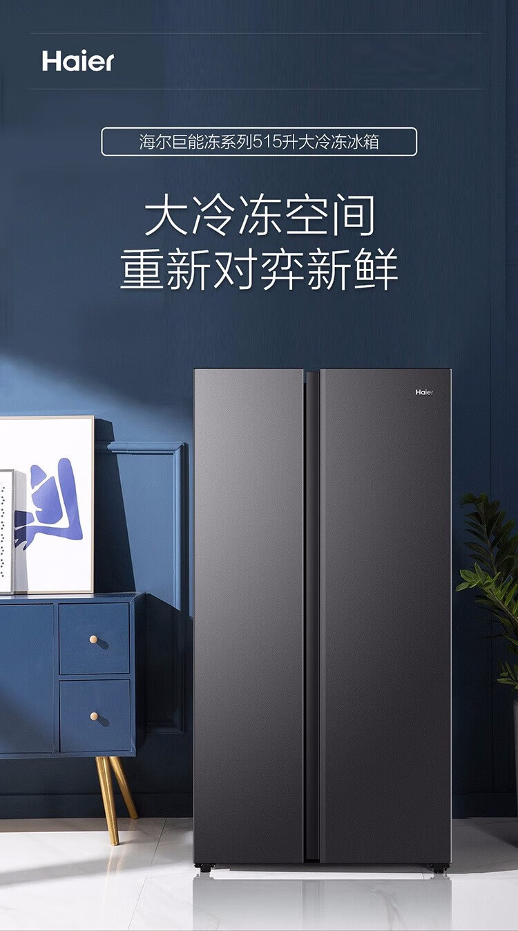 海尔 515L 巨能冻对开门冰箱(BCD-515WLHSSEDS9)日常售价 3099 元,今日京东专卖店叠加首单立减 500 元 + 480 元大额券优惠后,仅需 2119 元即可入手。