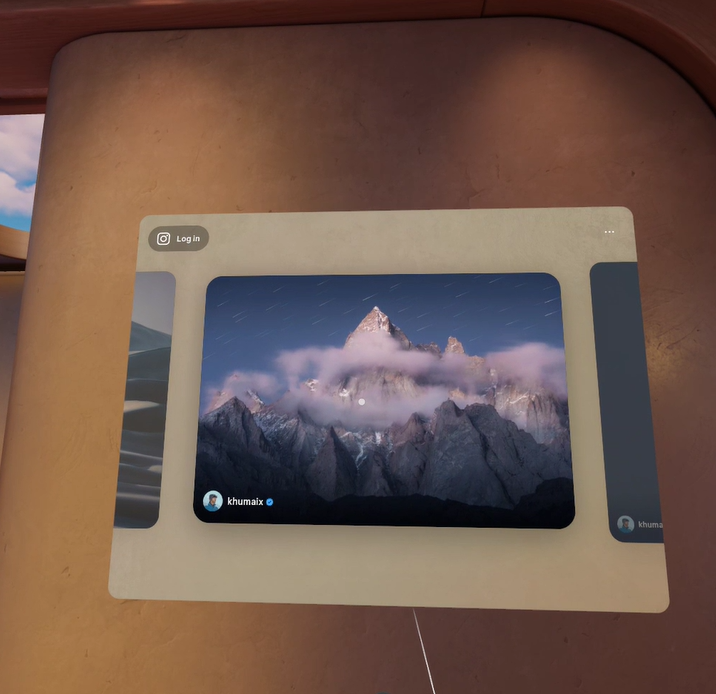 此外,沉浸式主界面新增了一款名为 Instagram Window 的虚拟“物件”—— 一个挂在墙上的大型数字相框,可展示来自 Instagram 的图片与视频内容,呈现风格与 Horizon OS 主应用一致的合成 3D 效果。