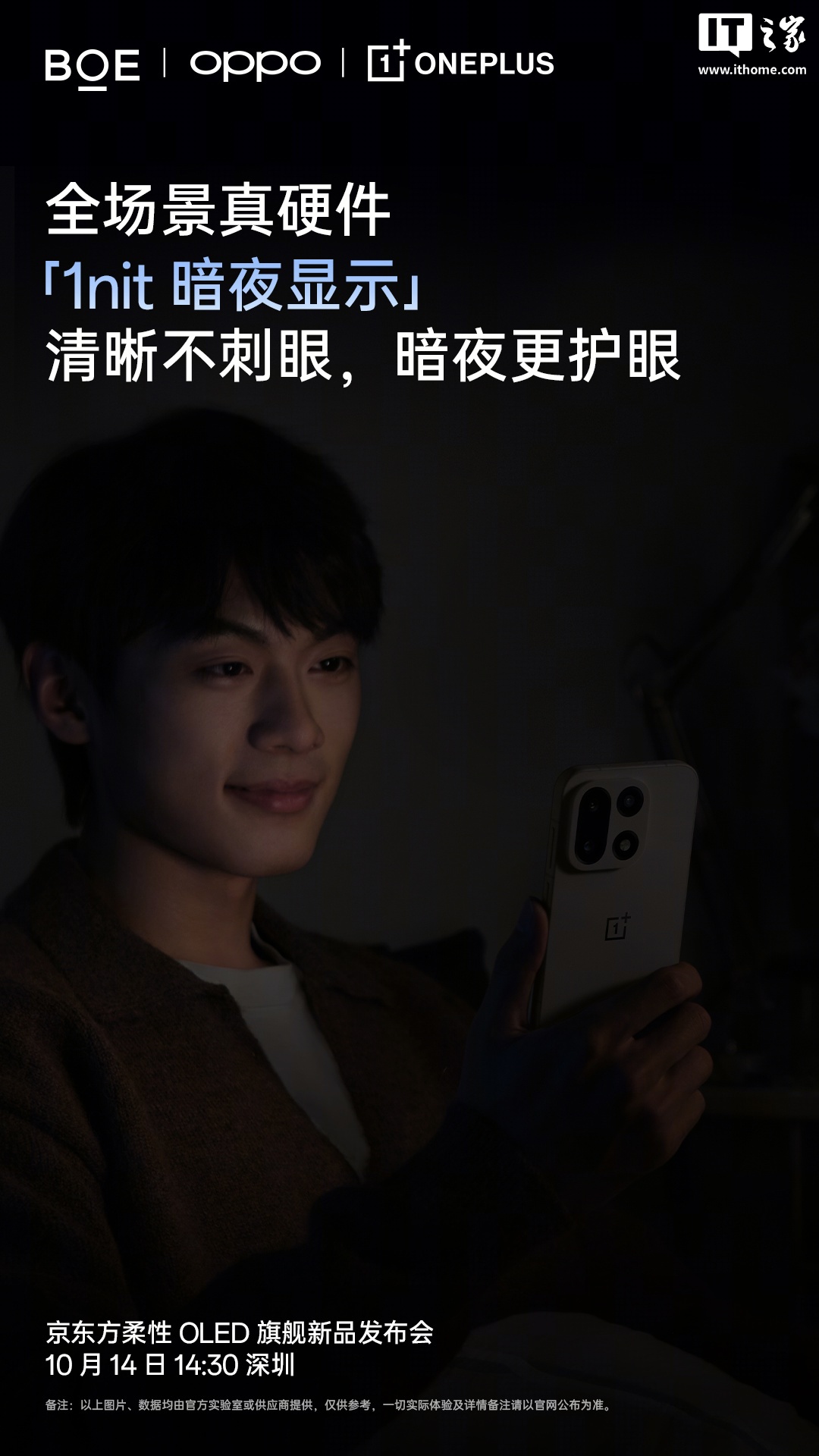 IT之家 10 月 13 日消息,一加今天在微博预热了一加 15 手机的屏幕方案,拥有窄边框、硬件 1nit 显示等特性。