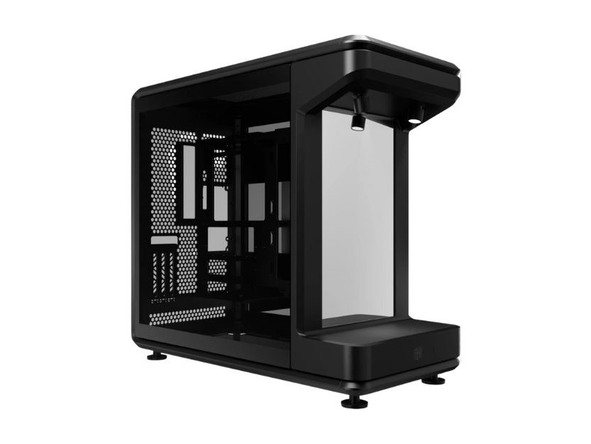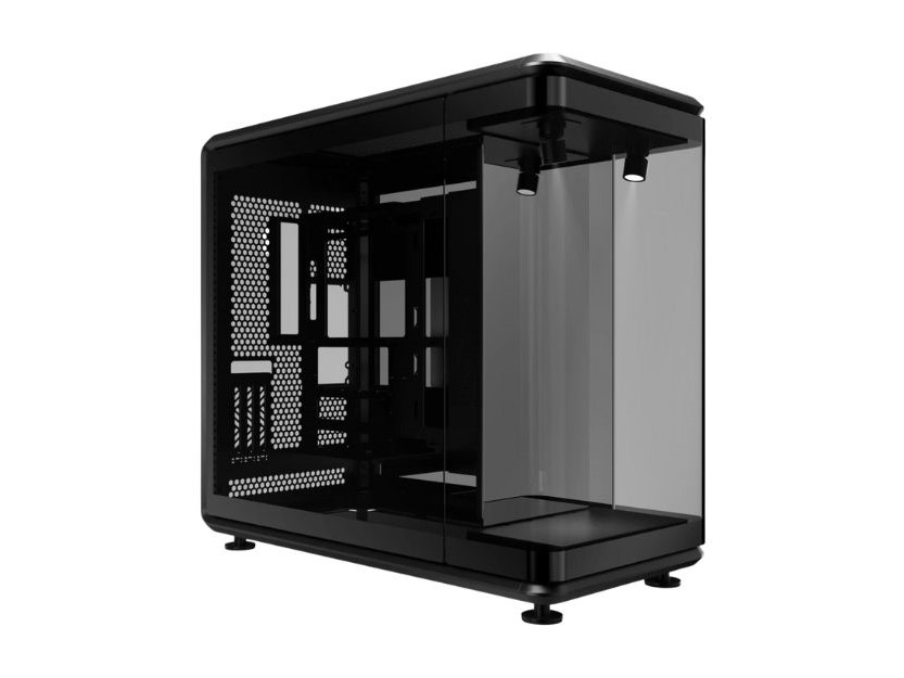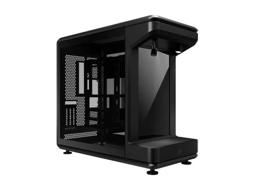 首款型号是 MasterFrame 360 Panorama,其设计此前已在售价 3099 美元的限量版整机中亮相。这款机箱尺寸为 55 厘米深、29 厘米宽、58 厘米高,前部为一个带有镜面面板和两个 ARGB 射灯的封闭式展示平台。
