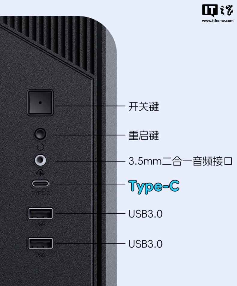 I/O 方面,系列机箱提供 1 个 USB-C 接口、2 个 USB-A 3.0 接口、1 个 3.5mm 音频接口。
