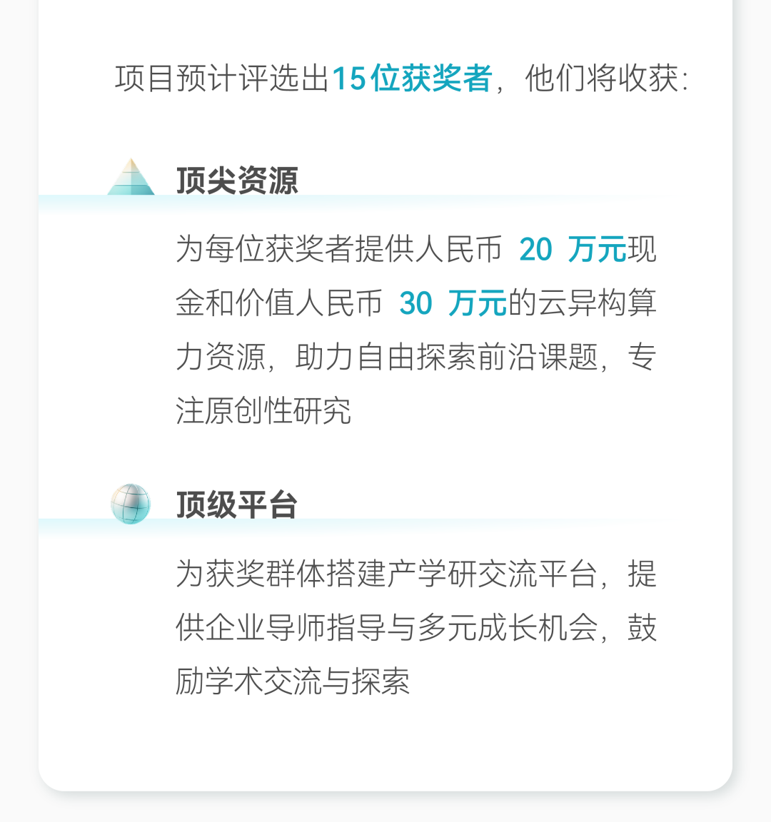 首届预计将评选出 15 位优秀学子,每人总支持高达 50 万元!其中包括: