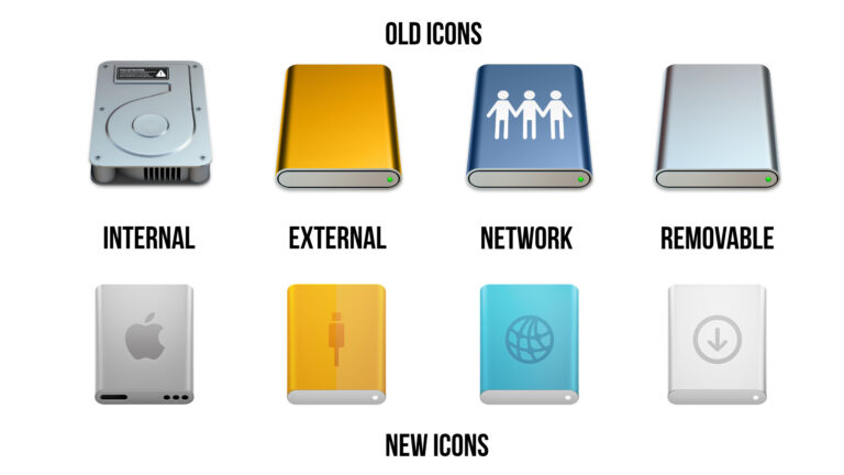 此前的 Macintosh HD 图标为带有螺丝、通风孔和警示标签的银色金属盒,在 Beta 5 测试版中,苹果将其调整为边缘圆润、外观更加现代的铝质外观外壳,中心位置还有一个显眼的苹果标志。