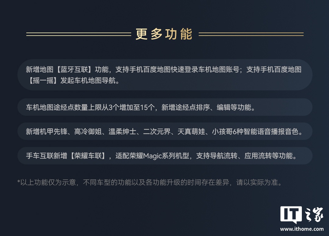 手车互联新增【荣耀车联】,适配荣耀 Magic 系列机型,支持导航流转、应用流转等