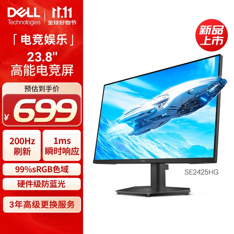 IT之家 10 月 14 日消息,戴尔新推出了一款 23.8 英寸的 FHD 显示器(SE2425HG),支持 200Hz 刷新率,京东显示为 699 元。