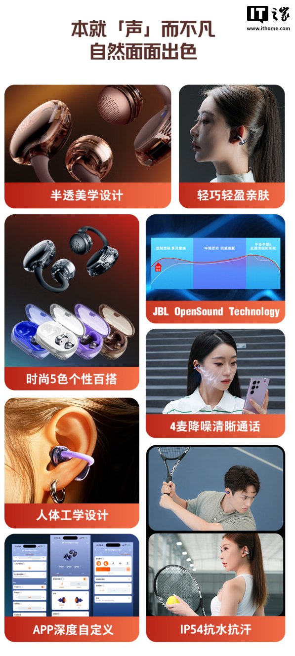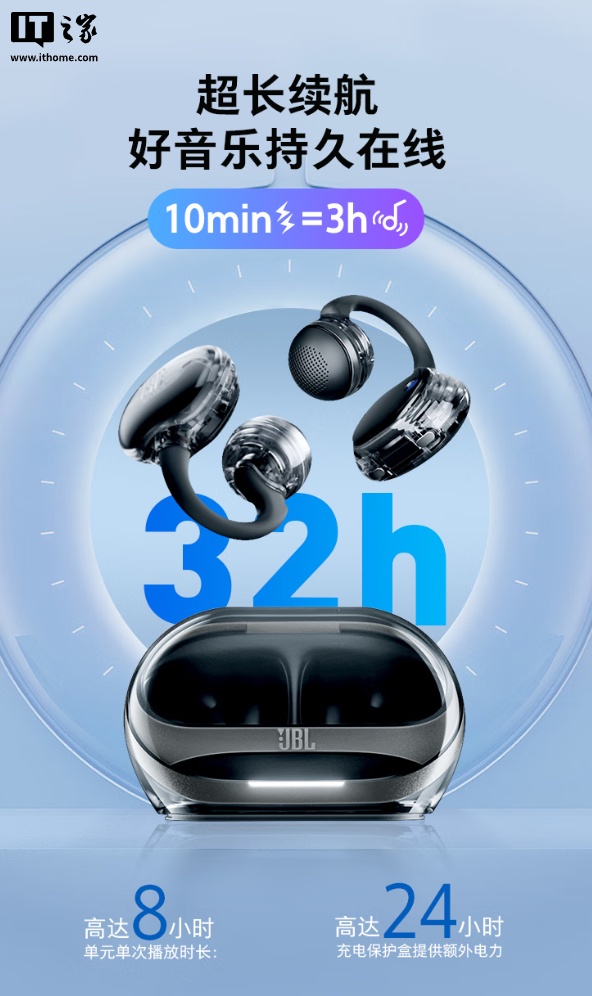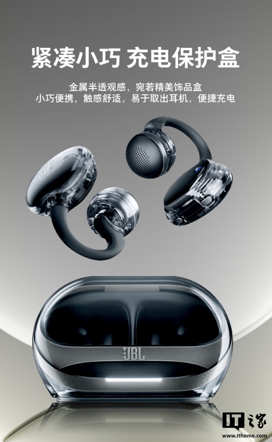 IT之家 10 月 14 日消息,JBL SOUNDGEAR CLIPS 琉璃扣耳机现已开启预售,主打半透明外观 + 开放式设计,支持 IP54 级抗水抗汗,售价 1399 元。