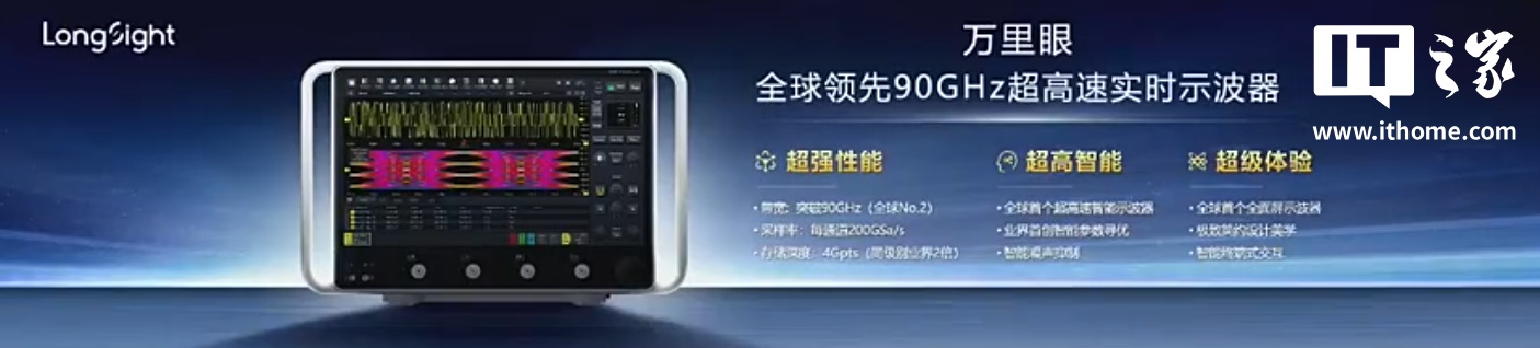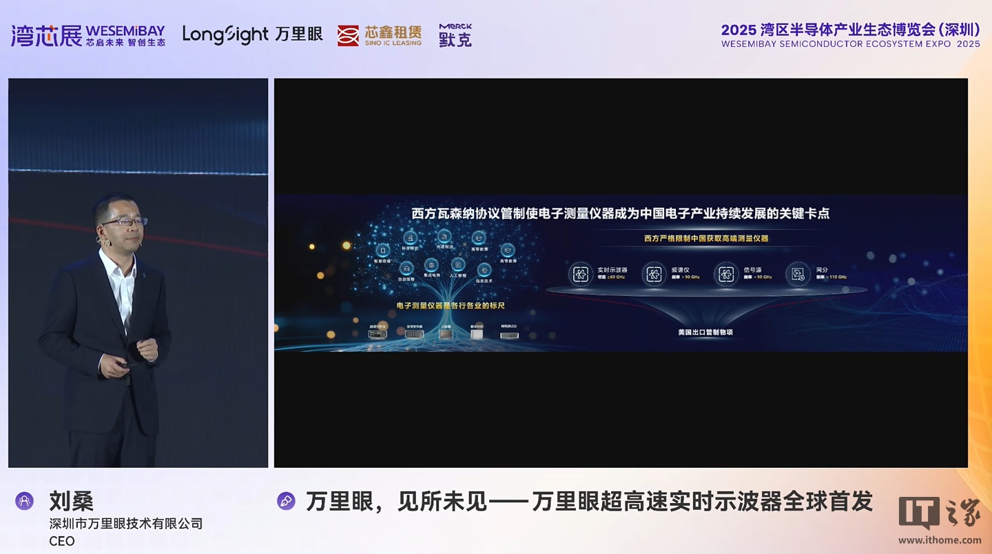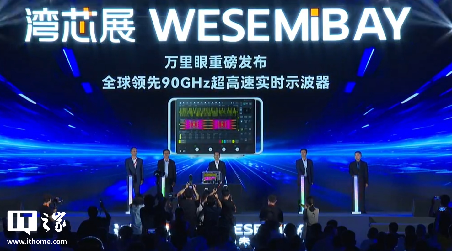 IT之家 10 月 15 日消息,在今日下午的 2025 湾区半导体产业生态博览会(2025 湾芯展)开幕仪式上,新凯来子公司万里眼 90GHz 超高速实时示波器全球首发。
