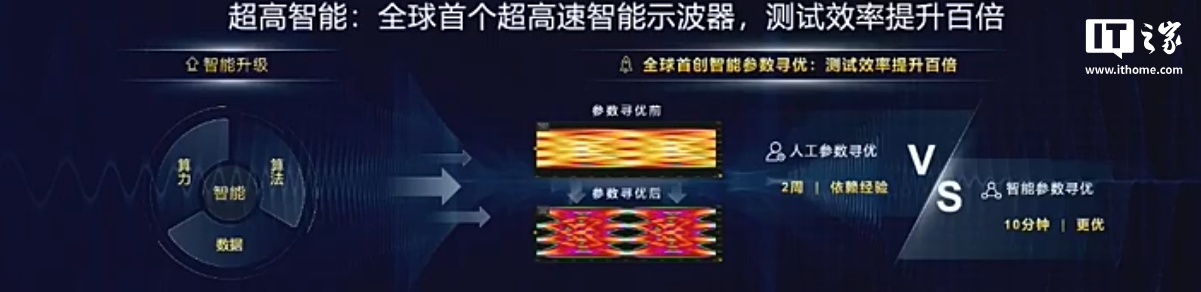 该示波器采用全新“慧眼”架构,搭载 7 大基础能力底座,全球首创智能参数寻优,超高智能实现测试效率提升百倍。