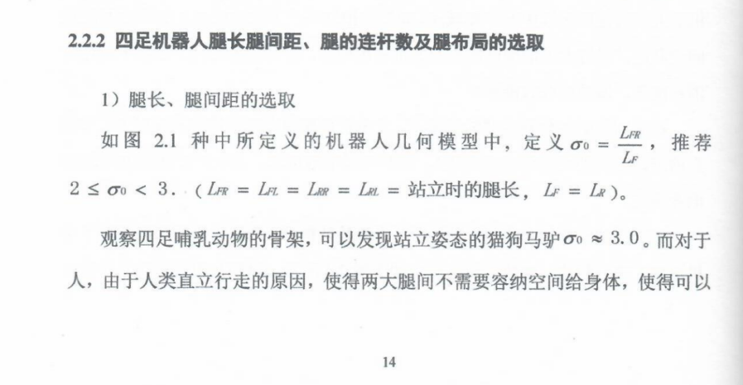 1)四足机器人腿长腿间距、腿的连杆数及腿布局的选取;