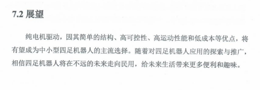 他还在论文结尾大胆展望,纯电机驱动因其结构简单、低成本、高可控等优点,未来有望成为中小型四足机器人的主流选择。