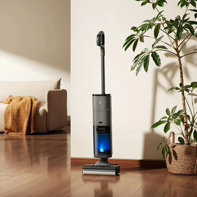 其他方面,该产品采用低重心设计,自带牵引力,单手即可掌控。LED 大屏实时显示主机状态,语音播报清晰提示操作指令,支持标准模式、吸水模式、除菌模式、模式强化等。
