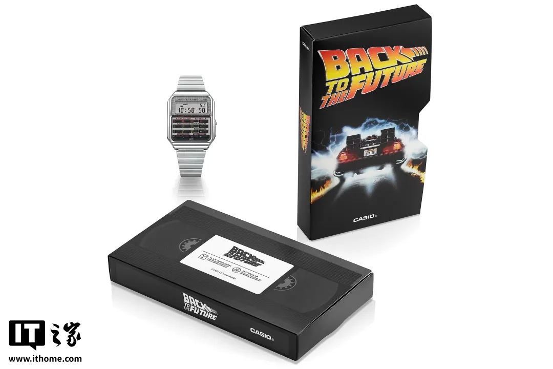 IT之家 10 月 16 日消息,卡西欧现已推出《回到未来》联名款计算器手表,致敬这部经典科幻电影上映 40 周年。