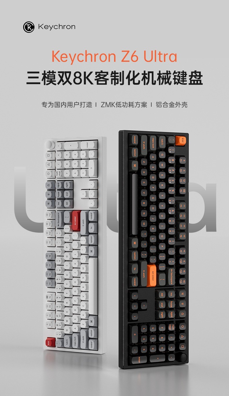 IT之家 10 月 17 日消息,Keychron 渴创本月 15 日推出了 Z6 Ultra 客制化机械键盘。这一型号采用全配列布局,外部为电泳 + 喷粉工艺铝合金机身,背板装饰以数控刀纹。