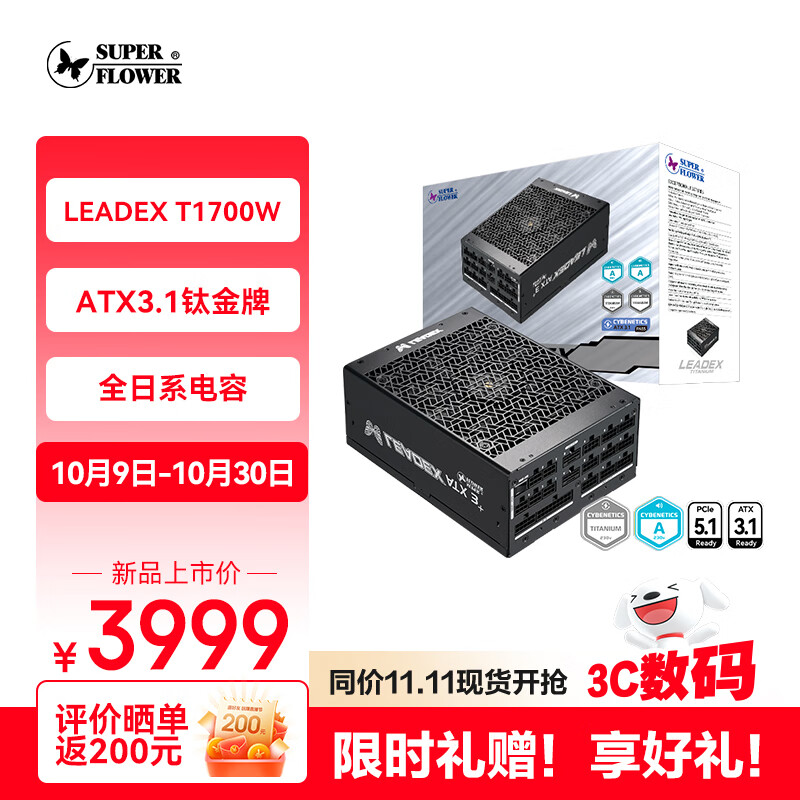IT之家 10 月 17 日消息,振华 SUPER FLOWER 此前在今年 6 月上架了 2800W 版本的 LEADEX TITANIUM ATX 3+ 电源,最近又在本月 14 日推出了两款定位较低但仍然分别拥有 2200W 和 1700W 功率的钛金产品。