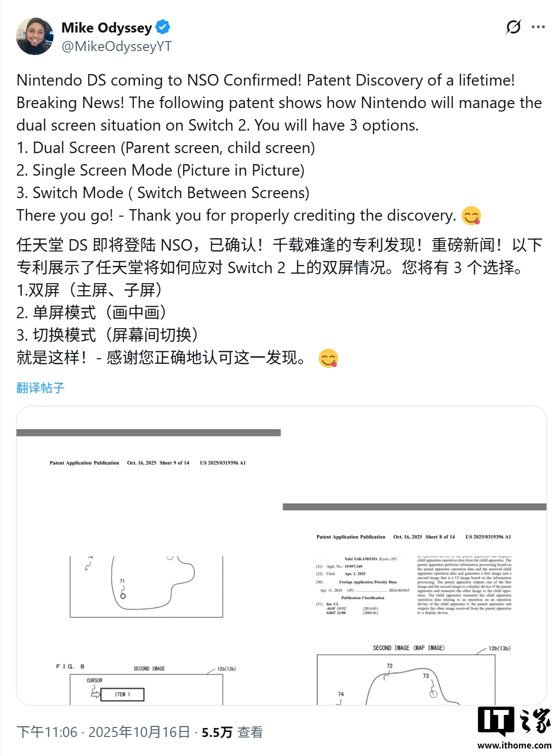 IT之家 10 月 17 日消息,消息源 @MikeOdysseyYT 昨日(10 月 16 日)在 X 平台发布推文,分享了一组任天堂最新获批的专利,展示了适用于 Switch 2 的配件,从而实现接近经典掌机 DS 与 3DS 游戏体验。
