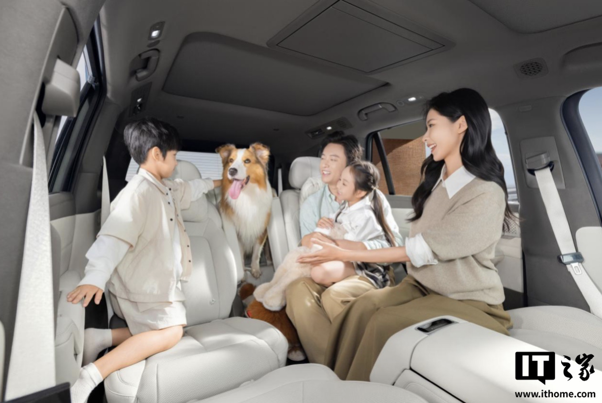 腾势 N8L 配有“冰箱彩电大沙发”,采用双幅方向盘,拥有 49 处收纳空间、双 50W 手机风冷无线快充,后排配有 17.3 英寸吸顶屏,支持 DeepSeek AI 大模型;采用三排六座布局,副驾和第二排配有十点按摩的零重力座椅;第三排支持调节靠背、10cm 前后滑动,还有独立的空调出风口、帝瓦雷音响、三挡可调座椅加热。