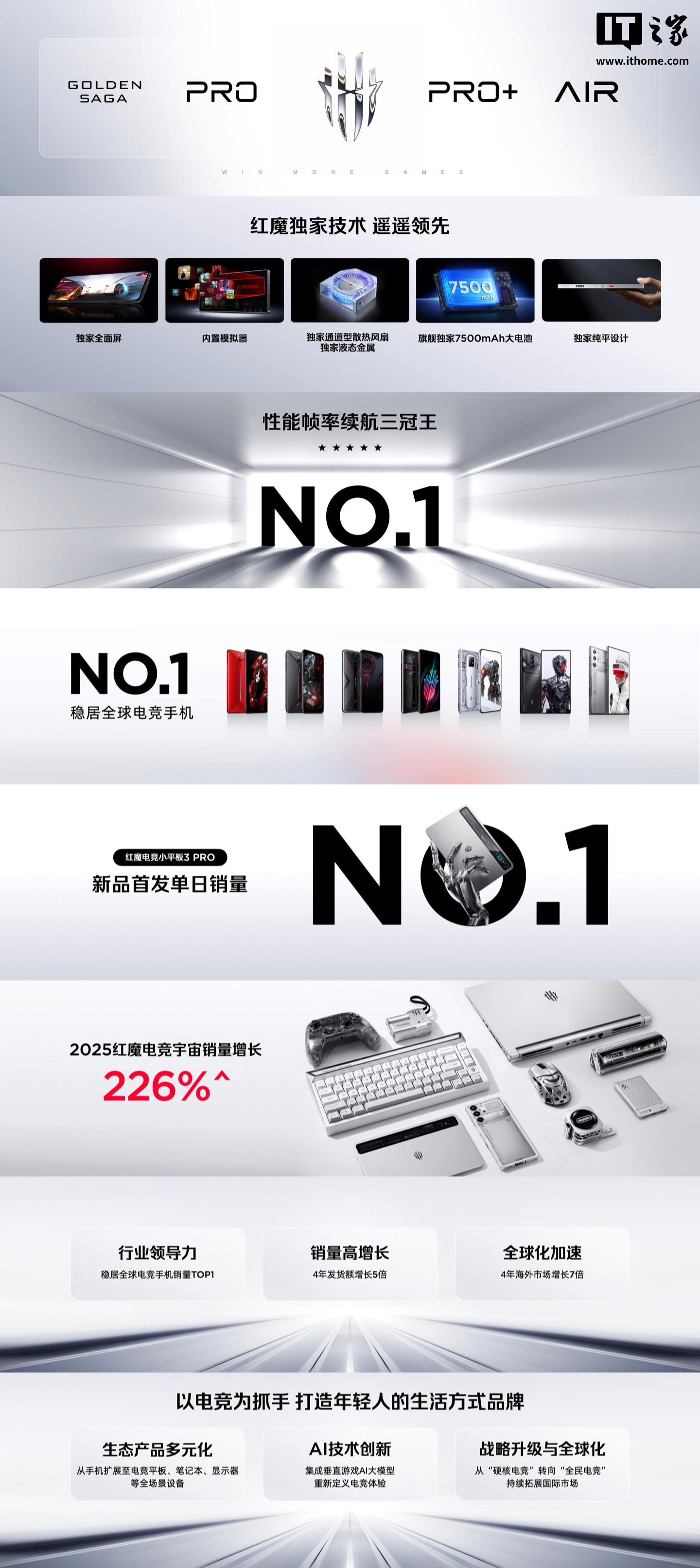 IT之家 10 月 17 日消息,红魔 11Pro 系列新品发布会正式开始,中兴通讯终端事业部总裁、努比亚技术有限公司总裁倪飞宣布:2025 红魔电竞宇宙销量增长 226%,红魔电竞平板 3 Pro 新品首发当日销量 NO.1。