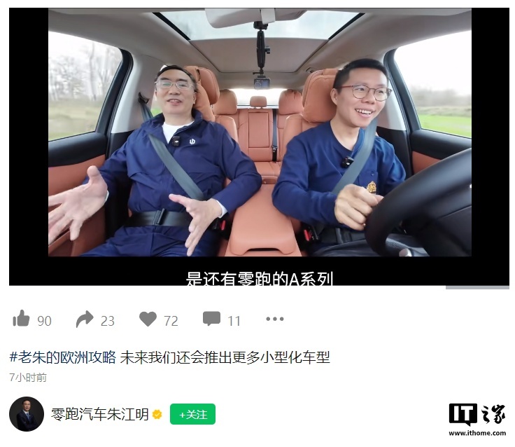 朱江明表示,针对欧洲市场,零跑后续也规划了更多的小型化车型,包括比零跑 B10 更小的车,还有就是零跑 A 系列。