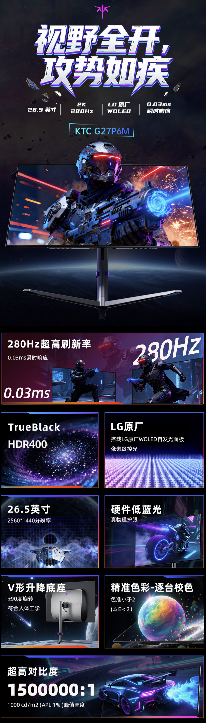 IT之家 10 月 18 日消息,KTC 现已在京东上架一款型号为“G27P6M”的 26.5 英寸显示器,其主打 2K 280Hz OLED,定价为 2999 元。