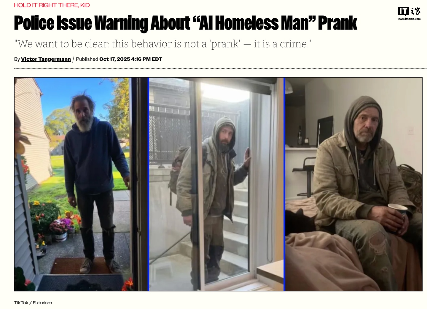 华盛顿州奥克港警方也指出,“AI 无家可归者”恶作剧带来了安全隐患,一度让人误以为“有流浪者闯入奥克港高中校园”。警方提醒,AI 能生成极具欺骗性的影像,虚假信息传播极快,容易引发恐慌并干扰公共安全。