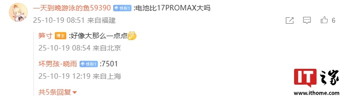 IT之家注意到,有用户询问新机价格会不会大涨,笋寸表示“大... 小... 涨吧”。另外,还有用户询问 REDMI K90 Pro Max 的电池容量是否比小米 17 Pro Max 大,笋寸回复“好像大那么一点点”,这也意味着 REDMI K90 Pro Max 的电池容量将大于 7500mAh。