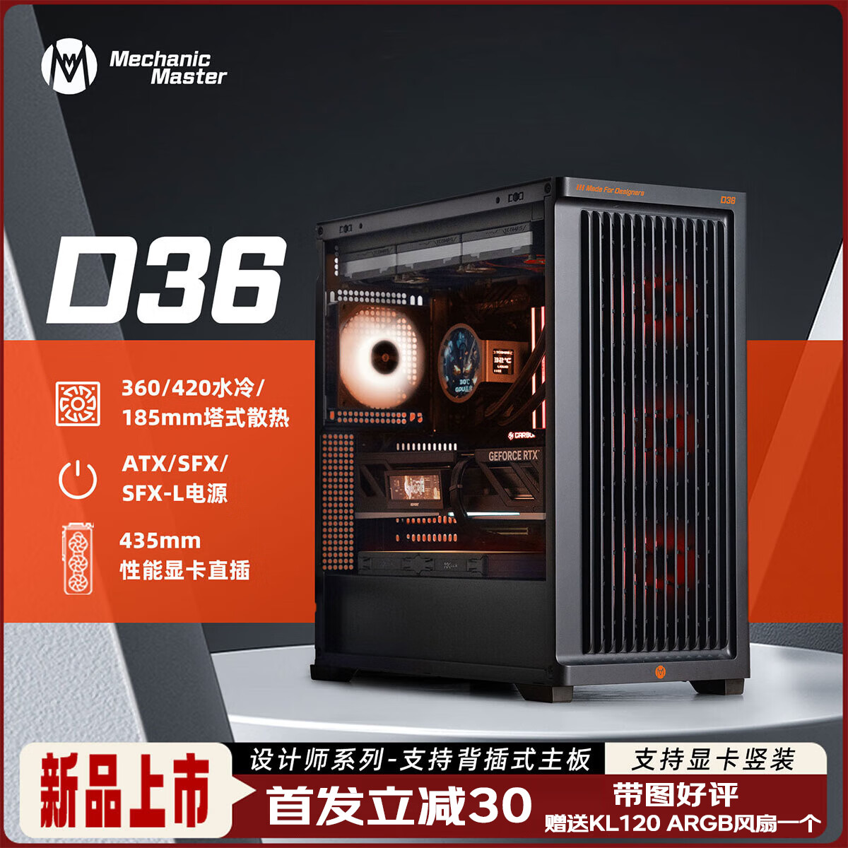 IT之家 10 月 20 日消息,机械大师本月 16 日推出了 D 设计师系列的首款机箱 D36。这一型号整体设计语言简洁,前面板大间隙格栅镂空,兼容 E-ATX 主板,能同时安装两组 360 冷排。