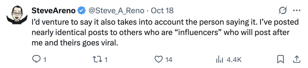 对于大号或已经被算法认可的账号,规则很容易就能判定内容“优质”,所以他们的帖子通常曝光很高。