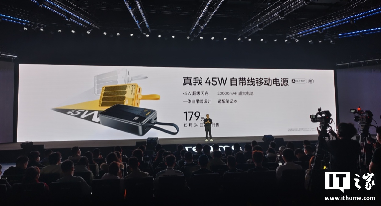 IT之家 10 月 21 日消息,在今日发布会的最后,realme 还带来一款真我 45W 自带线移动电源,售价 179 元,10 月 24 日开售。