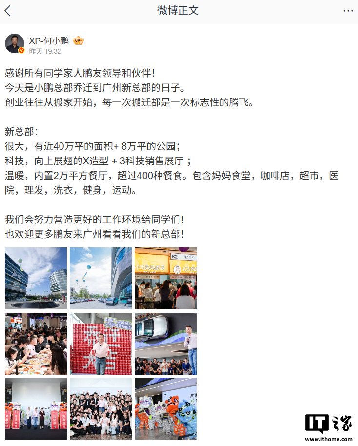 IT之家 10 月 21 日消息,小鹏汽车今日宣布新总部在广州正式启用,“新总部乔迁,是新起点,是新征程。”