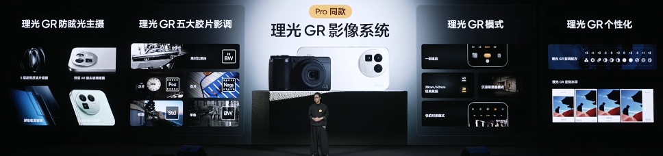 定制化理光 GR 相机模式:内置 28mm 与 40mm 经典焦段,搭配一划速启理光 GR 经典快门样式和沉浸取景器模式