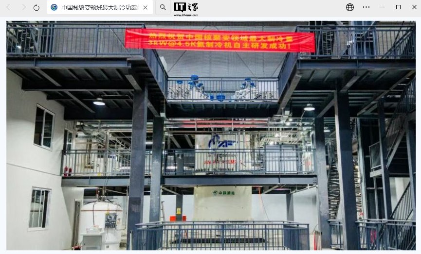 IT之家从合肥综合性国家科学中心能源院获悉,3kW@4.5K 氦制冷机的成功研制,为我国超大功率超低温制冷装备的研发积累了宝贵经验,有效消除了西方在该领域对我国的“卡脖子”风险,为我国核聚变产业的健康发展提供了关键的技术支撑和装备保障。