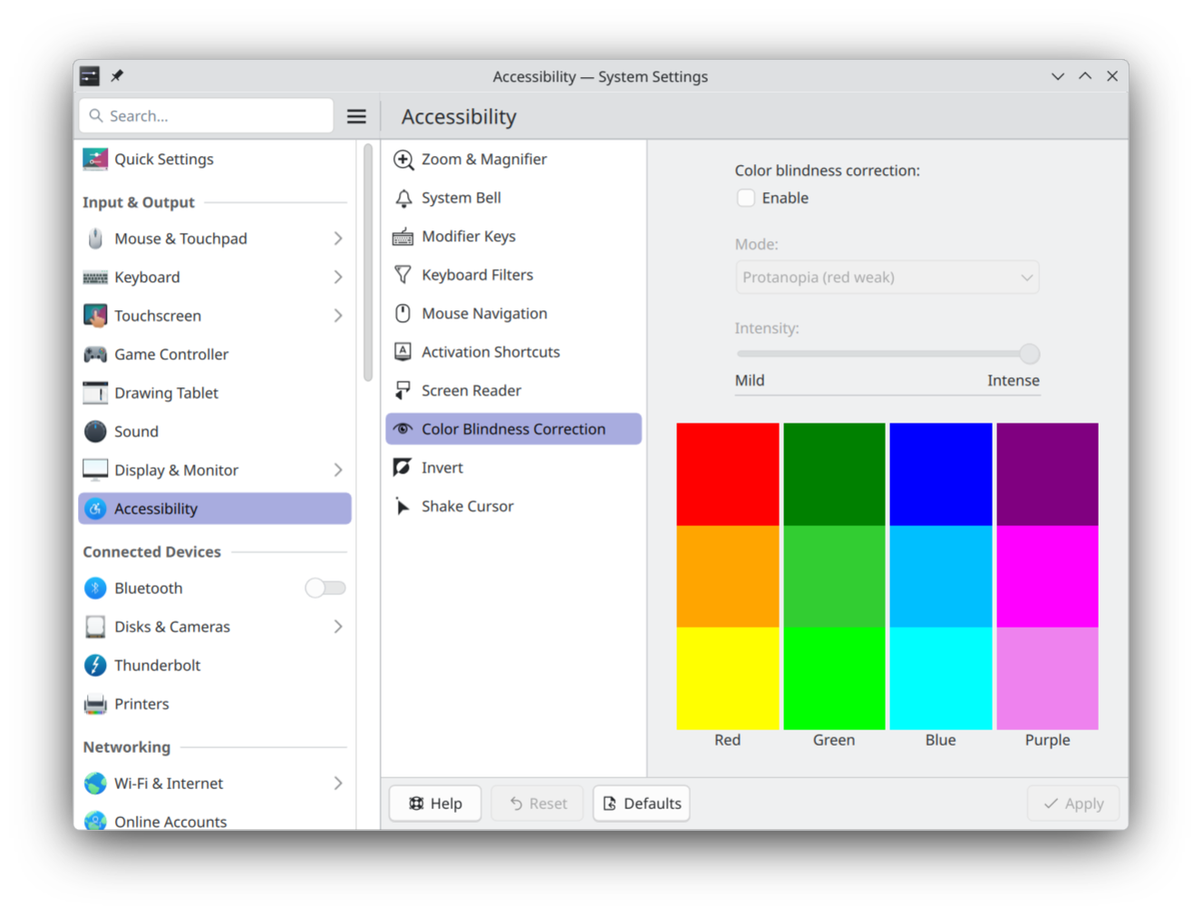 新版 Plasma 进一步优化了无障碍功能。屏幕阅读器 Orca 现在会读出大写锁定状态变化,并改进了在快捷键与自启动设置页的语音提示。针对对颜色敏感的用户,新增了 灰度模式,可在全系统范围内去除颜色。开发团队还检查并修复了可能触发光敏性癫痫的屏幕闪烁问题。