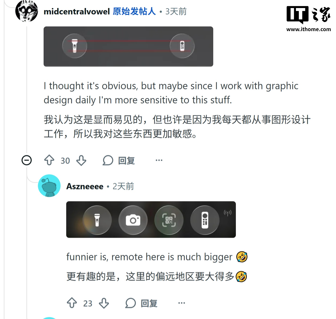 此外,在照片查看器的工具栏中,手电筒图标符号显得更小,而在控制中心里,同一个图标却显示得更大、更粗重。尽管它不影响实际功能,这种视觉上的不一致性让追求细节的用户感到困扰。IT之家附上相关图片如下: