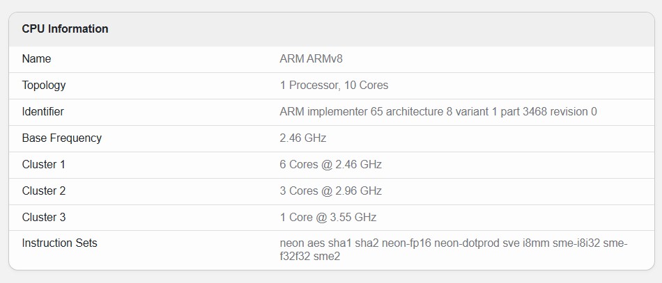 跑分下降背后有一个明确的技术原因:三星调低了芯片的测试主频。IT之家注:最新的 Geekbench 条目显示,Exynos 2600 的 CPU 核心频率配置为“6 个 2.46GHz 核心 + 3 个 2.96GHz 核心 + 1 个 3.55GHz 核心”。