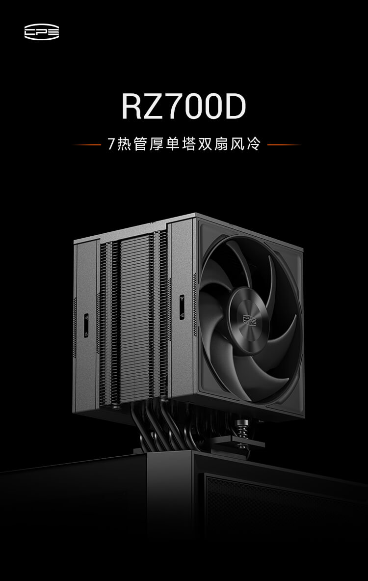 RZ700D 三维 122×111×159.5 (mm),热管向左偏移并同时避让内存和显卡,更厚的鳍片矩阵带来额外 20% 热容面积,而折 Fin + 扣 Fin 的边缘处理、家族化一体式顶盖、无螺丝孔风扇硅胶脚垫等设计让该型号更为简洁美观。