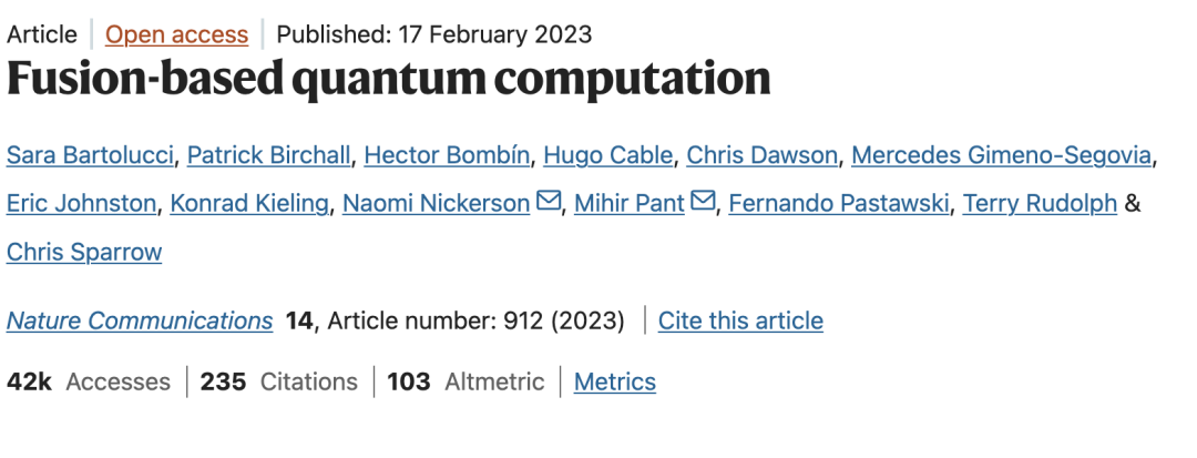 2021 年,PsiQuantum 发明了全新技术融合式量子计算(Fusion-Based Quantum Computing,FBQC),并发布了一套关于容错量子计算的基础框架。