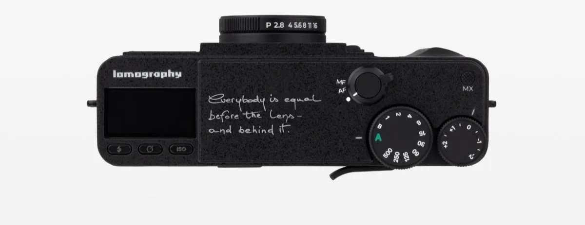 机身上还印有一句标语:“镜头面前,人人平等 —— 镜头背后,亦是如此。”(Everybody is equal before the lens — and behind it.)