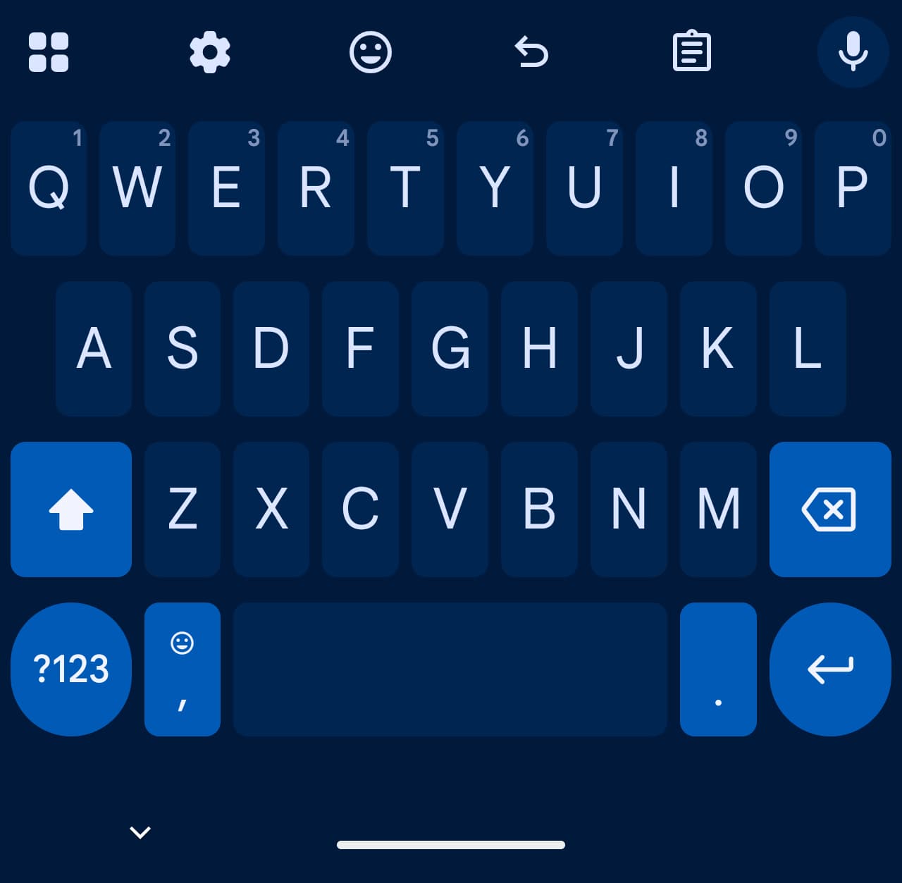当用户选择关闭句号和逗号键后,键盘最下方的一行会发生显著变化。原本位于空格键两侧的标点符号消失,仅保留左侧的“?123”符号切换键和右侧的回车键。IT之家附上相关截图如下: