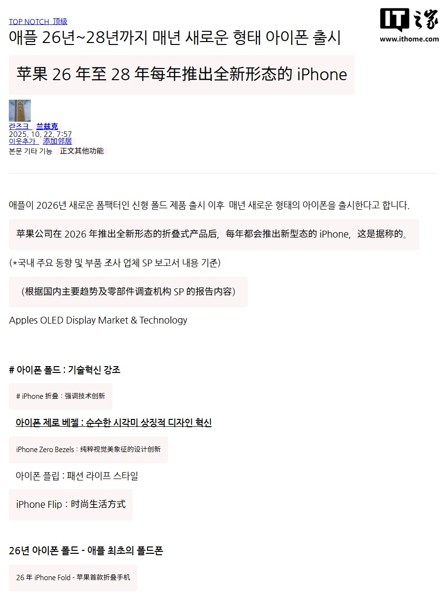 IT之家 10 月 23 日消息,消息人士 yeux1122 昨天在 Naver 博客更新文章,爆料苹果最近三年的新品发布节奏。