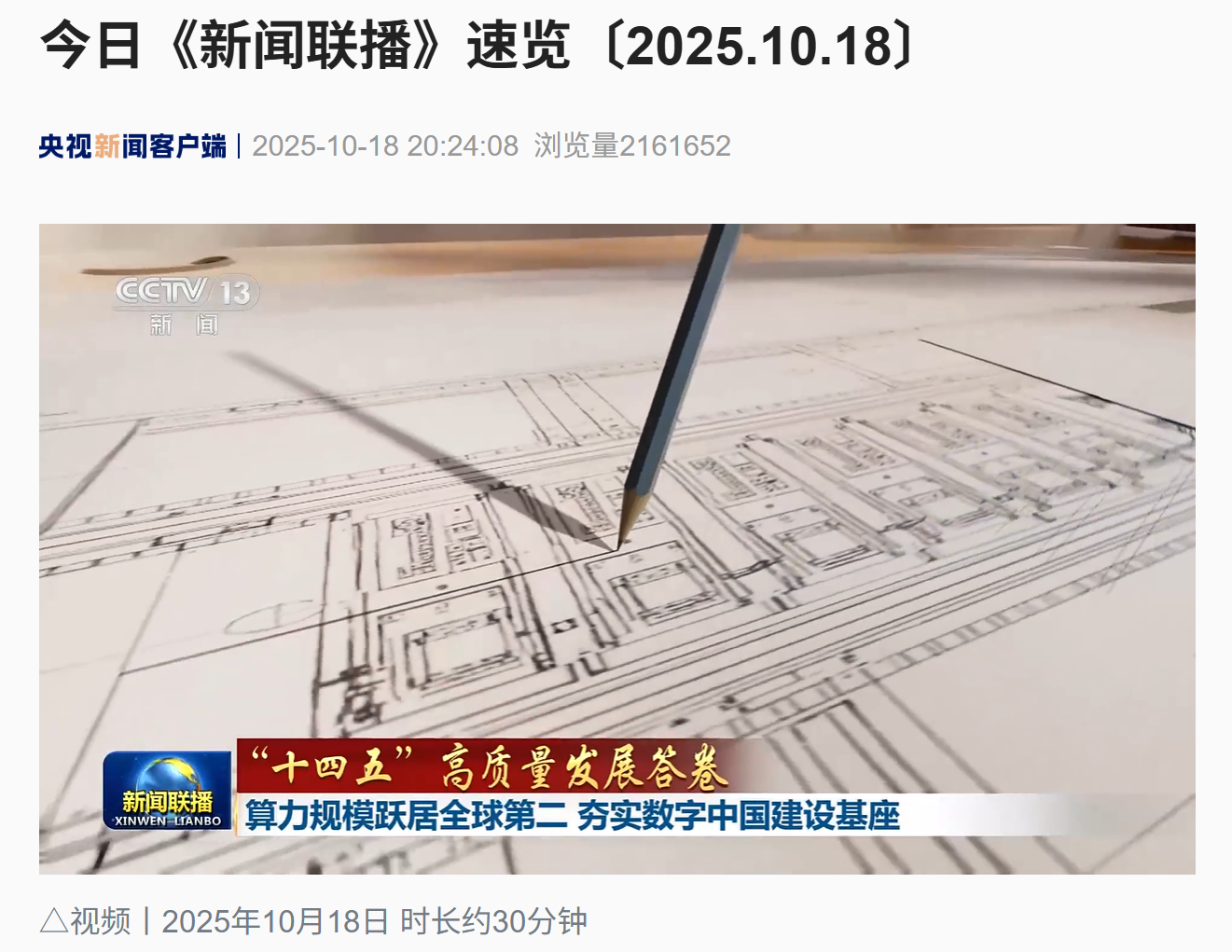 值得一提的是,《新闻联播》今年 10 月 18 日报道称,“十四五”以来,中国开启新一轮数字基础设施大布局,全国一体化算力网连通东西南北,算力总规模跃居全球第二。