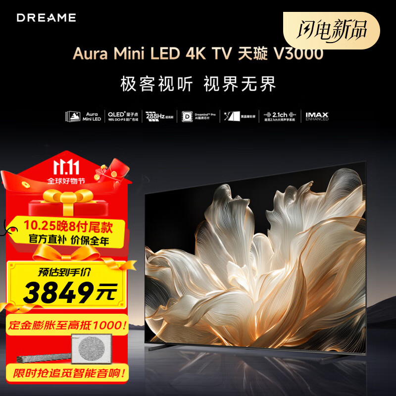 IT之家 10 月 25 日消息,追觅现已进入智能电视市场,推出了首款产品“V3000 Aura”4K Mini LED 电视,该机提供 55-100 英寸规格可选,定价为 3999 元起,首发价 3849 元起。
