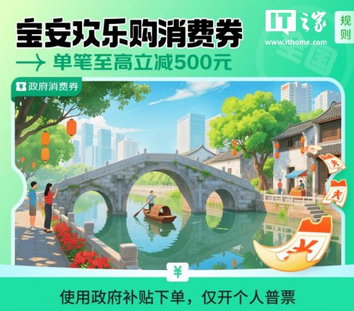 IT之家 10 月 25 日消息,深圳宣布推出“宝安消费券”,消费者在京东 App 搜索“宝安消费券”,每天 0 点可参与领券活动,活动将于 11 月 15 日结束。