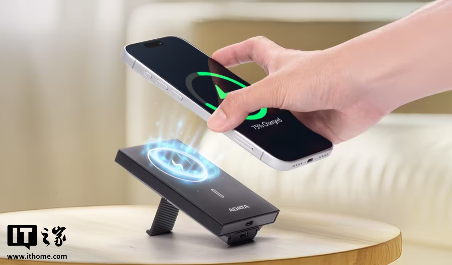 IT之家 10 月 27 日消息,威刚现已发布 SR800 磁吸移动电源固态硬盘,是全球首款将充电宝和移动硬盘组合起来的产品,支持磁吸快充、读写速度可达 2000MB/s。