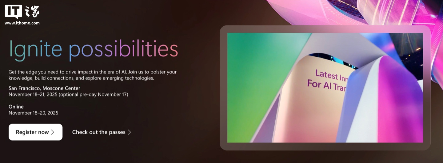IT之家 10 月 28 日消息,微软宣布旗下 Ignite 2025 活动将于 11 月 18 日至 21 日在旧金山举办,线上线下将会有超过 1.7 万名参会者。官方同时公布本届大会的演讲嘉宾名单,并确认该公司的 CEO 萨蒂亚・纳德拉(Satya Nadella)将缺席今年的活动(这是 Ignite 活动首次在纳德拉缺席的情况下举行)。