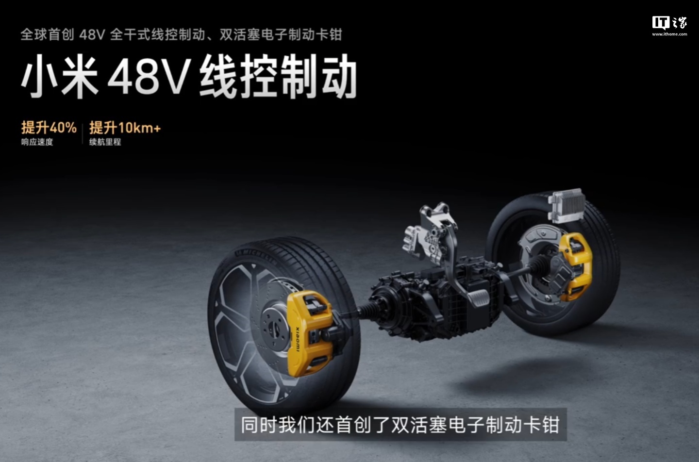 小米 48V 线控制动取消了液压机构,使用电动卡钳来实现线控电传,无需添加刹车油。该技术使得线控制动系统响应速度提升 40%,续航里程提升 10 公里以上。