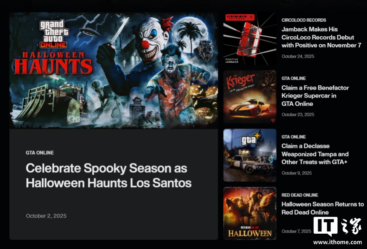 IT之家 10 月 30 日消息,Rockstar Games 于当地时间周三悄然推出了其官网首页的全新改版设计,此次更新已面向全球用户上线,但公司并未就此发布任何官方公告。