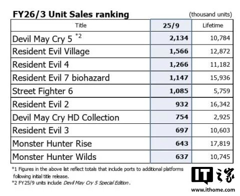 从销量来看,《怪物猎人:荒野》勉强挤进卡普空本季度销量前十榜单,销量不及《街头霸王 6》、《鬼泣 HD 合集》,以及前作《怪物猎人:崛起》。不过,这些老游戏近期推出了大幅折扣促销活动,推动了卡普空在本财年上半年录得有史以来最高的“长销产品”(catalogue sales)业绩。