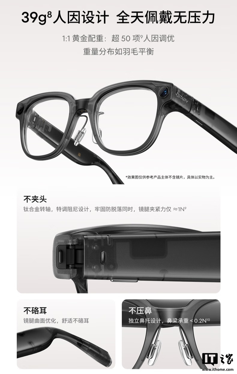IT之家附魅族 StarV Snap AI 拍摄眼镜规格参数如下: