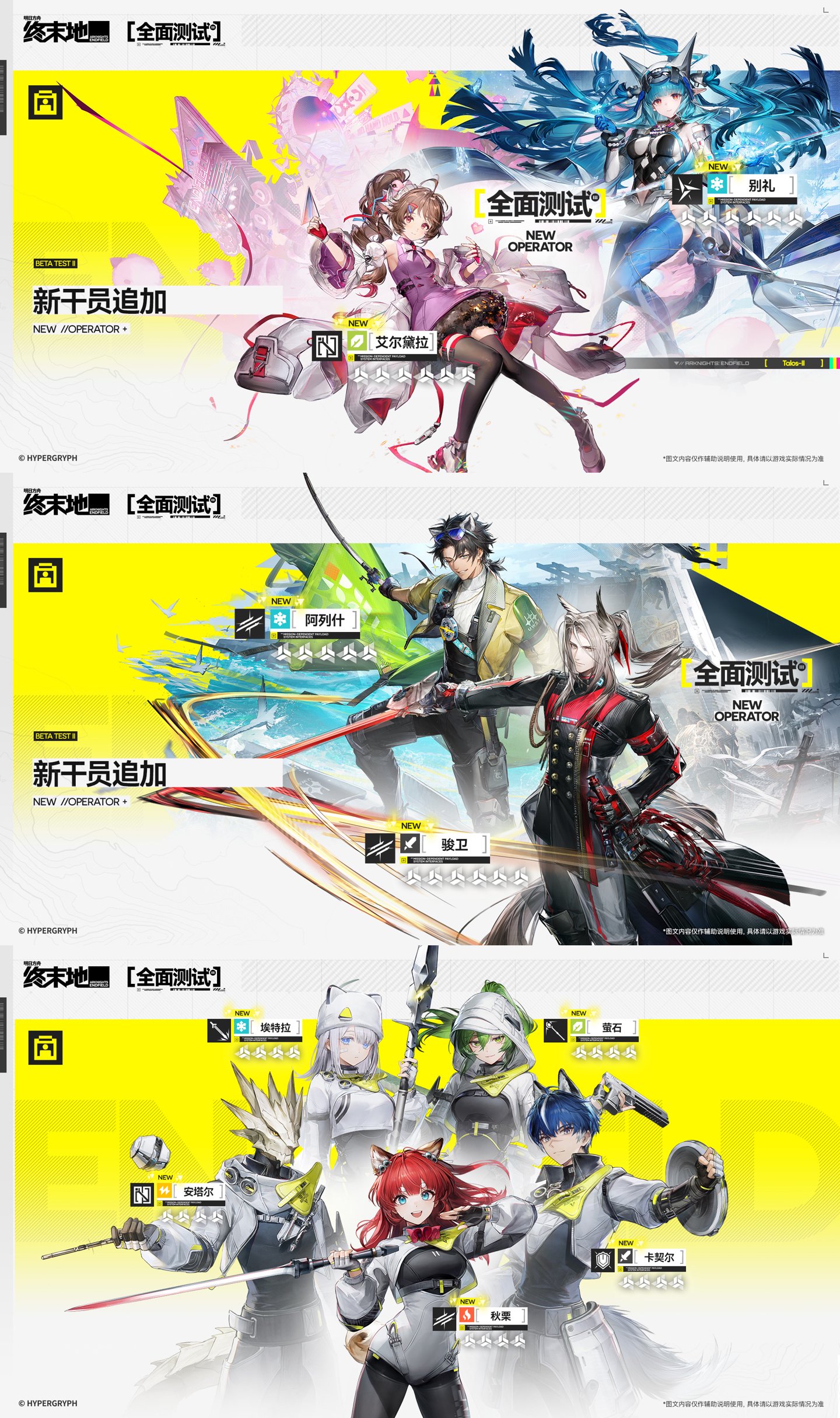 此次测试属于删档计费测试,测试期间将开启付费功能。鹰角表示,全球预约里程碑解锁至对应阶段且全球官方社媒关注数达指定数量后即可获得 5 星干员【昼雪】、【基础寻访凭证】×20、5 星武器【终点之声】等奖励。
