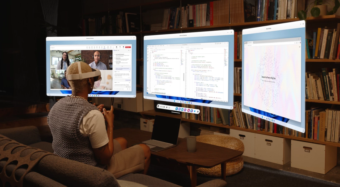 另参考IT之家先前报道,Meta 联合微软为 Meta Quest 3/3S 头显上线 Mixed Reality Link 应用,号称可以帮助用户获得“沉浸式办公”体验,用户通过上述应用,可连接本地 Windows PC 或云端的 Windows 365 PC,用户既可以将这些虚拟显示器悬浮在周围环境中,以保持与现实世界的联系,也可以进入私密虚拟空间,让外界干扰最小化,专注工作。